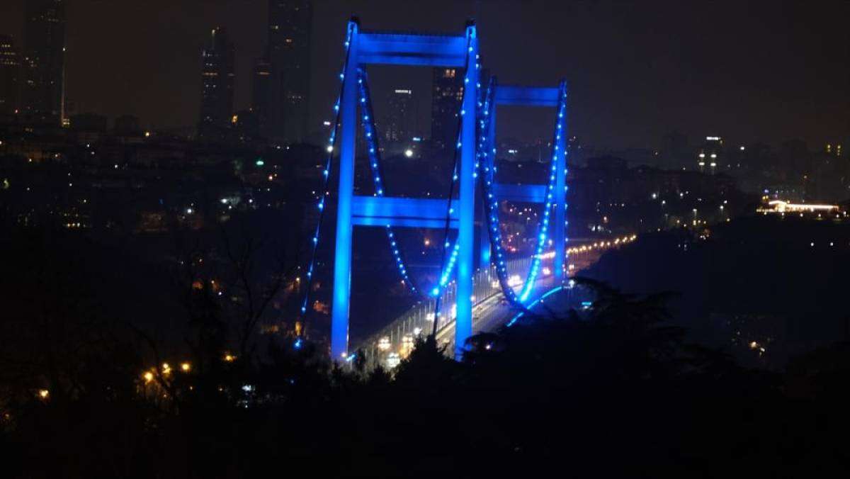 İSTANBUL (AA) - İstanbul'un simge noktalarından Fatih Sultan Mehmet (FSM) ve Yavuz Sultan Selim (YSS) köprüleri, kolon kanserine dikkati çekmek için mavi renkte aydınlatıldı.