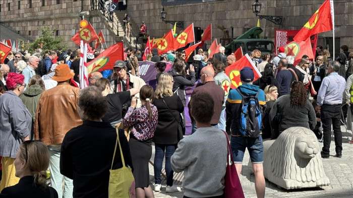 İsveç Meclisinin açılışını fırsat bilerek dün başkent Stockholm'de kent merkezinde toplanan terör örgütü PKK yandaşları, Meclisin önünde yaptıkları izinsiz gösteriyi sosyal medya hesaplarında paylaştı.