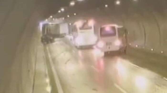 Kaza anı, tüneldeki güvenlik kamerasınca görüntülendi.