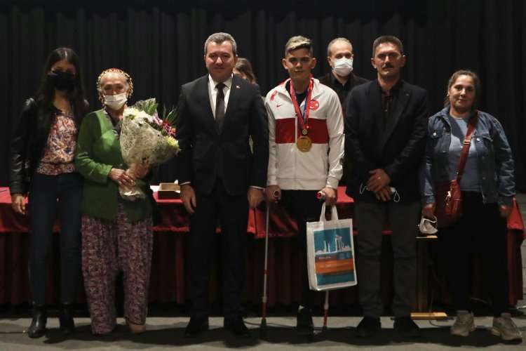 İZMİR (İGFA)- Milli Sporcu Bergamalı Rüstem Kurhan'a, Bergama Belediye meclisi tarafından başarıları ve azminden dolayı kararlaştırılan tam altın ödülü, Başkan Hakan Koştu tarafından verildi.
