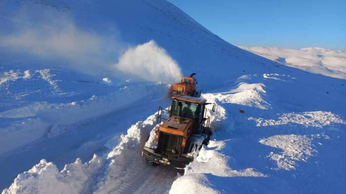 Kar kalınlığının yer yer 2 metreyi bulduğu bölgede çalışan ekipler, güzergahı uzun uğraşlar sonucu açtı.
