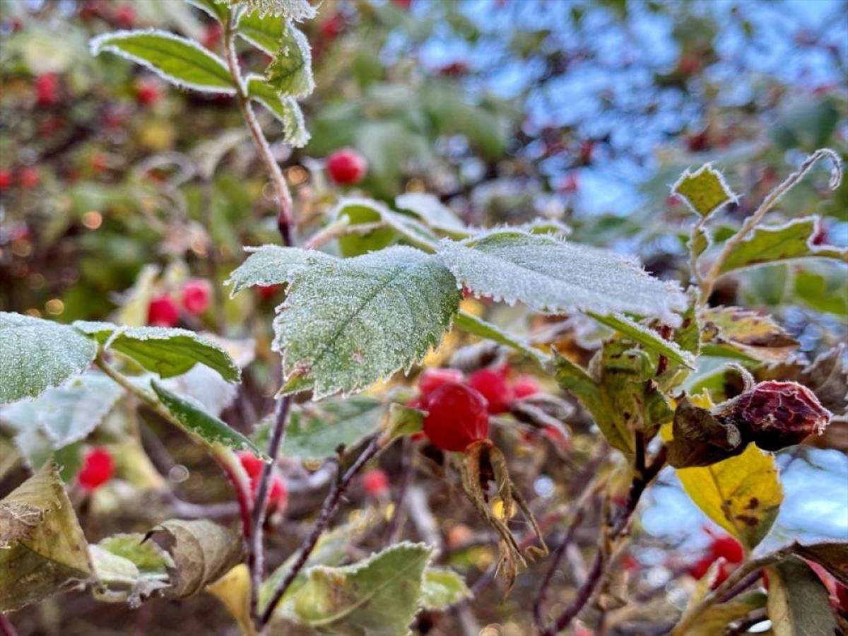 Hava sıcaklığının gece sıfırın altında 4 dereceye düştüğü Ardahan'da bitkiler kırağı tuttu.