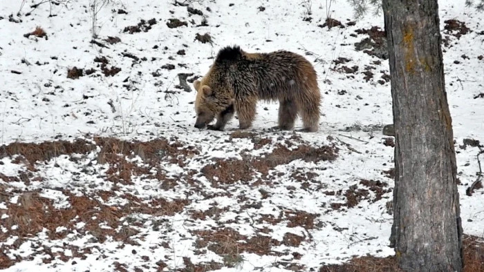 Dünyanın tek göç eden bozayılarının yaşadığı, sarıçam ormanlarıyla yılın büyük bölümü karla kaplı olan Sarıkamış'ta kış uykusundan uyanan ayılar, zaman zaman gündüz vakti orman yakınlarında yiyecek aramaya çıkıyor.
