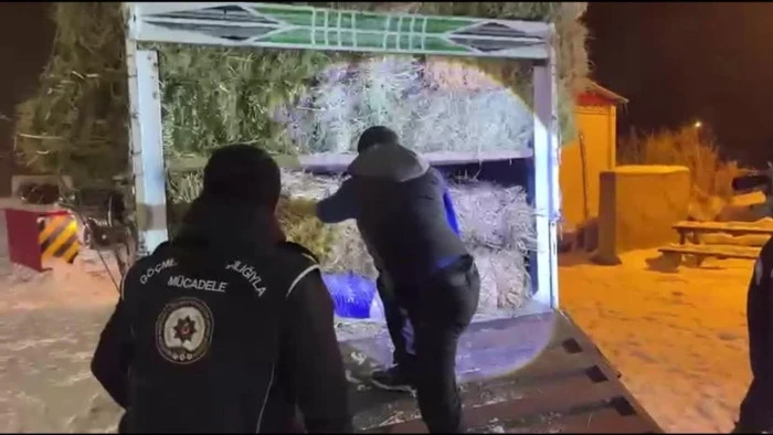 Polis ekiplerince kamyonette yapılan aramada, saman balyaları arasına gizlenmiş ve ülkeye yasa dışı yollardan giriş yapan Afganistan uyruklu 3 düzensiz göçmeni yakalandı, sürücü H.P. gözaltına alındı.