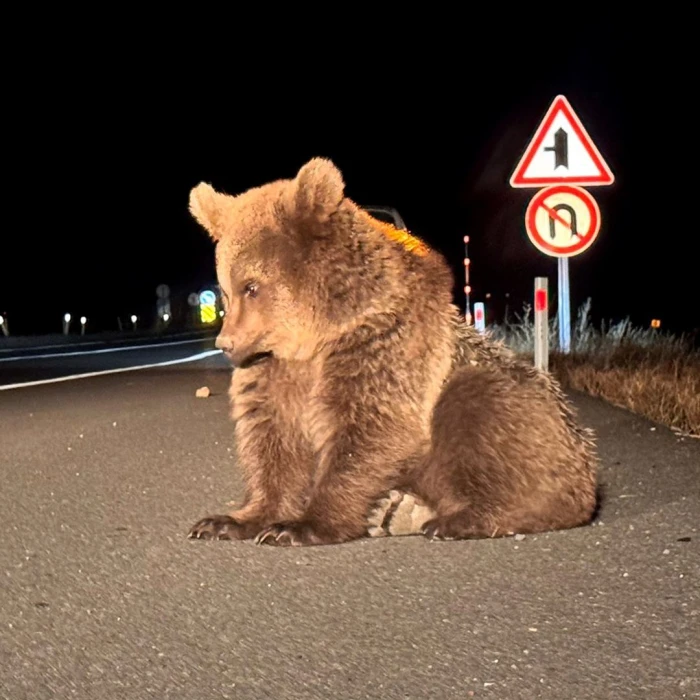 Kars'ta yol kenarında otururken bulunan yavru ayıya özel beslenme programı