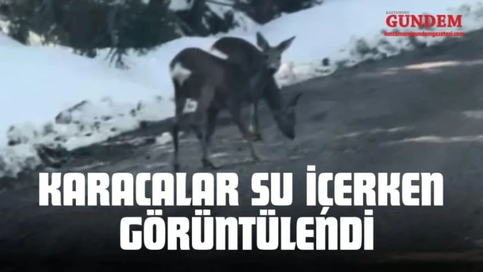 Şenpazar ilçesinde de ormanlık alanda beslenen iki karaca yoldan geçen bir vatandaş tarafından görüntülendi.