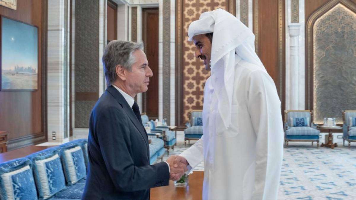 Katar Emirlik Divanı'ndan yapılan yazılı açıklamada, Şeyh Temim'in, İsrail ve Suudi Arabistan'ı kapsayan Orta Doğu turu kapsamında Doha'yı ziyaret eden Bliken'i kabul ettiği belirtildi.
