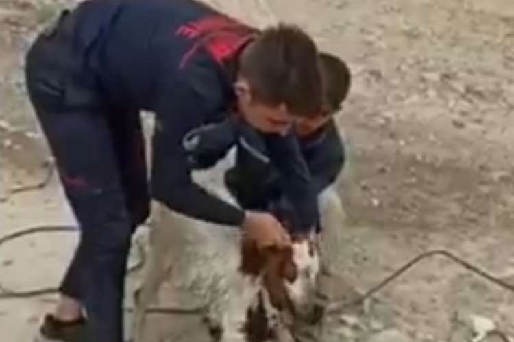 Sağlıklı bir şekilde kurtarılan keçi, sahibi Tarık Özdil’e teslim edilirken, Özdil, itfaiye ekiplerine teşekkür etti.
