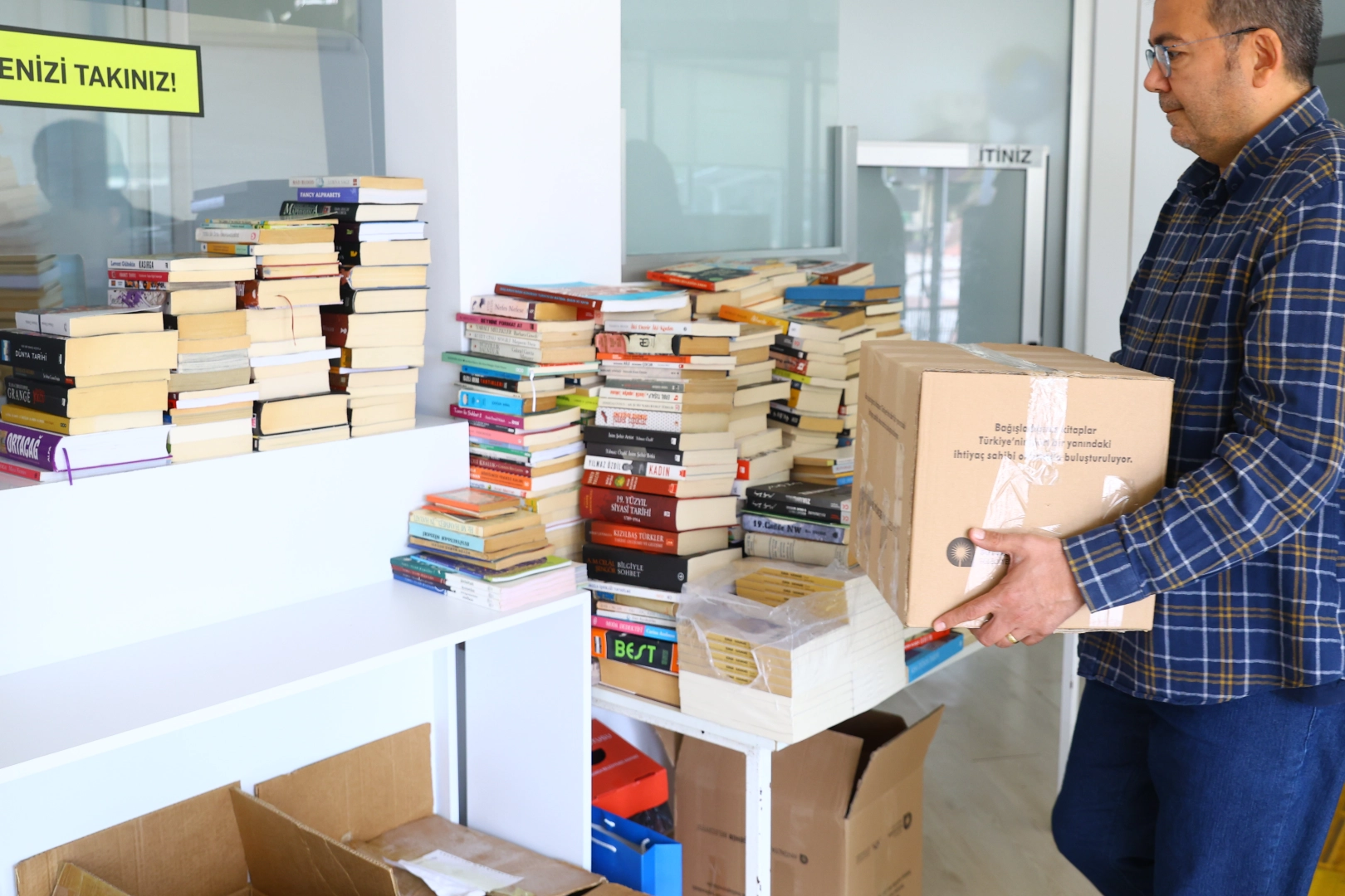 Kitap bağışları Doğan Hızlan Kütüphanesi’nde tüm hızıyla devam ediyor. Kampanyaya destek vermek isteyen vatandaşlar, kullanılabilir durumdaki kitaplarını kütüphaneye teslim ederek hem bireysel hem toplumsal gelişime katkı sunuyor.