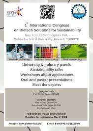 "1. Uluslararası Sürdürülebilirlik İçin Biyoteknoloji Çözümleri Kongresi" süresince sağlık, endüstriyel ve tarımsal biyoteknoloji ile biyomalzemeler, iklim değişikliği, biyoteknolojide yapay zeka ve dijitalleşme konularının ele alındığı oturumlar düzenlenecek.