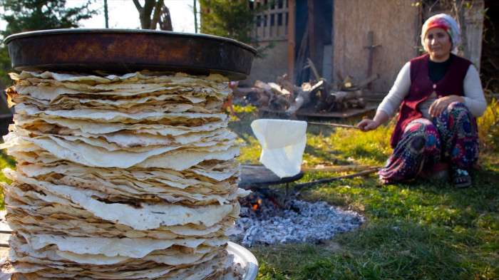 Etkinlik günü tirit olarak kullanılacak yufkalar, kadınlar tarafından özenle hazırlanarak muhafaza ediliyor.