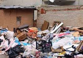 Müstakil evin bahçesinde biriktirildiği belirlenen 3 kamyon çöp, iş makineleriyle buradan çıkarıldı.