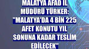 Türker, olağanüstü bir durum olmazsa yıl sonuna kadar Malatya genelinde toplam 4 bin 225 afet konutunun afetzedelere tesliminin planlandığını bildirdi.