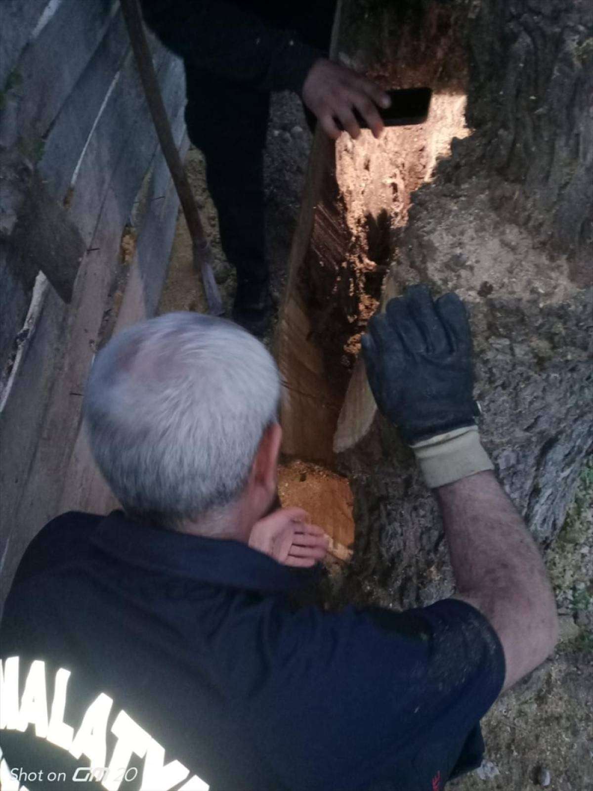 Malatya'da ağaç kovuğuna sıkışan yavru yediyi itfaiye kurtardı