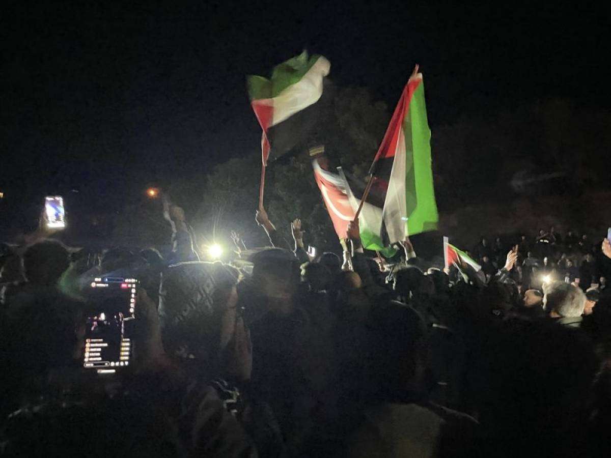 Büyükşehir Belediyesi yanında toplanan bir grup, İsrail'in hastane saldırısına tepki gösterdi. Türk ve Filistin bayrakları sallayan grup, İsrail aleyhine çeşitli sloganlar attı.