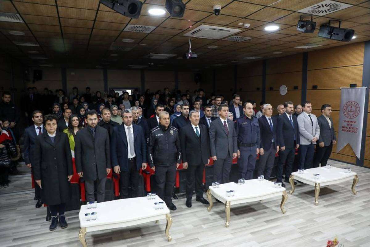 İlçe Halk Eğitim Merkezi Konferans Salonu'nda düzenlenen programda, saygı duruşunda bulunuldu, İstiklal Marşı okundu.