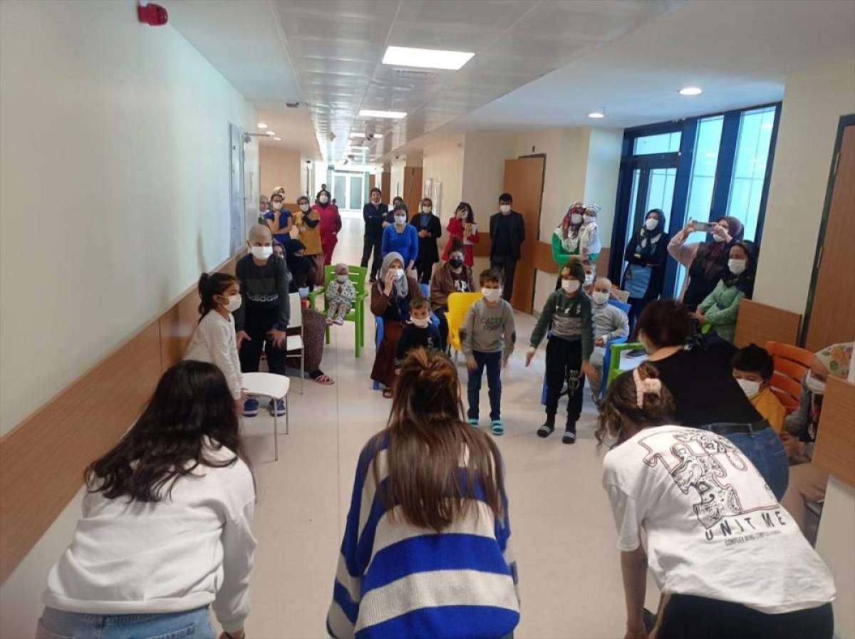 Ziyarette, öğretmen ve öğrenciler çeşitli etkinlikler gerçekleştirerek hastanede tedavi gören çocuklara moral verdi.