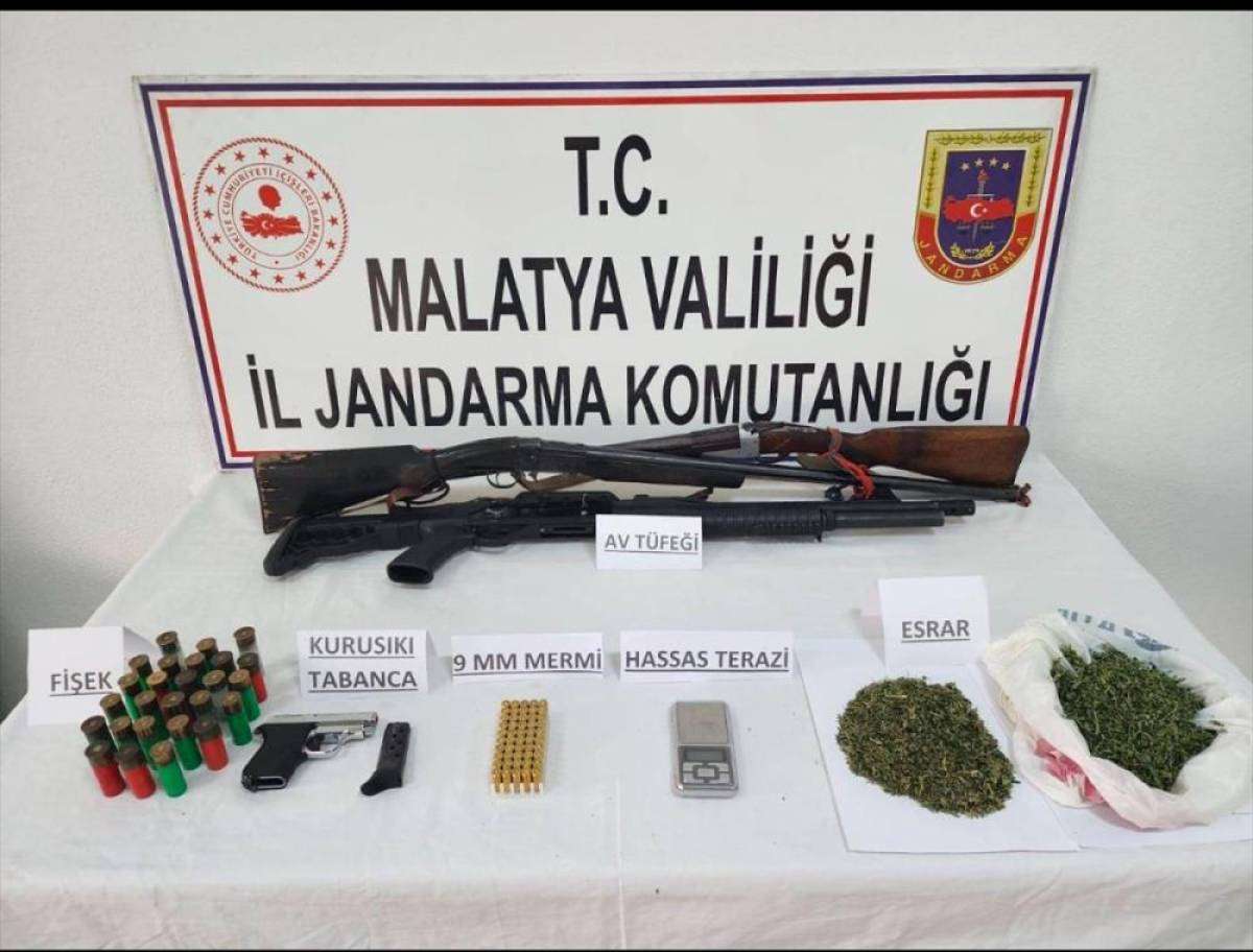 MALATYA (AA) - Malatya'nın Kale ilçesinde 3 ruhsatsız av tüfeği ve bir miktar uyuşturucu ele geçirildi.