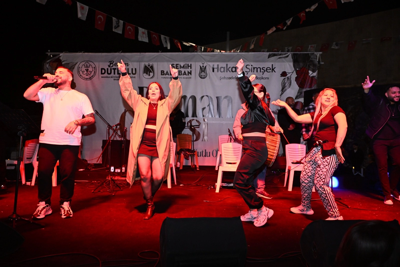 Gecede sahne alan Manisa Roman Orkestrası, Bando Gipsy, Can Demir ve Emirhan Özanıt, Solist Alpay Altan ve Assolist Ceyhun Saraç, sergiledikleri performanslarla alanı dolduran vatandaşlara keyifli anlar yaşattı. Müzik ve dans eşliğinde süren etkinlikte meydanı dolduran kalabalık, gece boyunca eğlencenin tadını çıkardı.