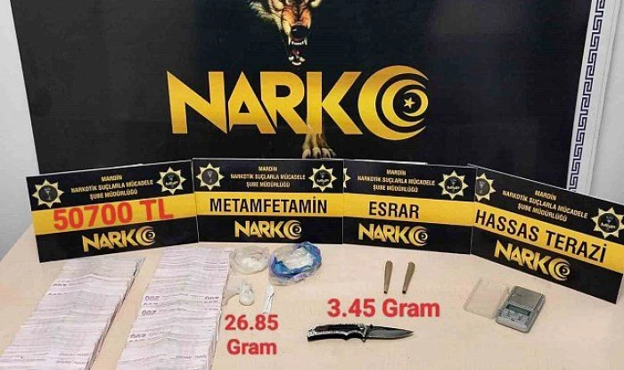 Bu kapsamda düzenlenen operasyonda, 26,85 gram metamfetamin, 3,45 gram esrar, hassas terazi ve kesici-delici alet ele geçirildi.