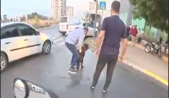 Yoldan geçerken olayı görüp duran bir motokurye de köpeğin saldırması sonucu yere düştü. Kendisini ısıran köpeği uzaklaştırmak için çaba gösteren yaralı kurye, güçlükle kurtarıldı.