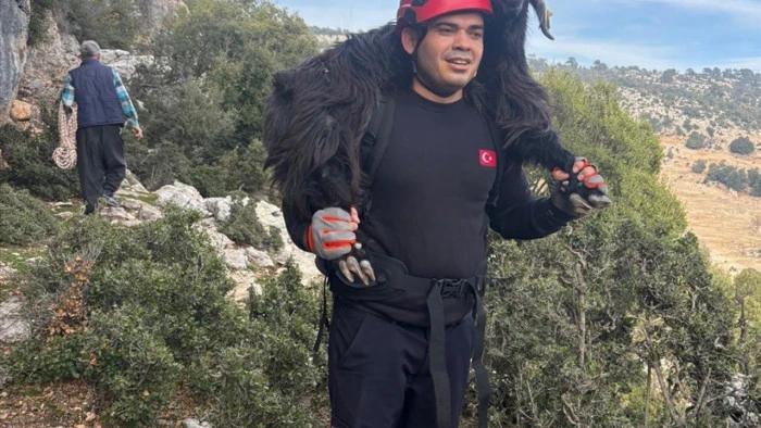 Mersin'de kayalıklarda mahsur kalan keçi kurtarıldı