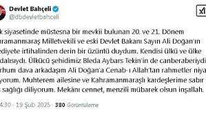 Bahçeli, sosyal medya hesabından yayımladığı taziye mesajında, şu ifadeleri kullandı: