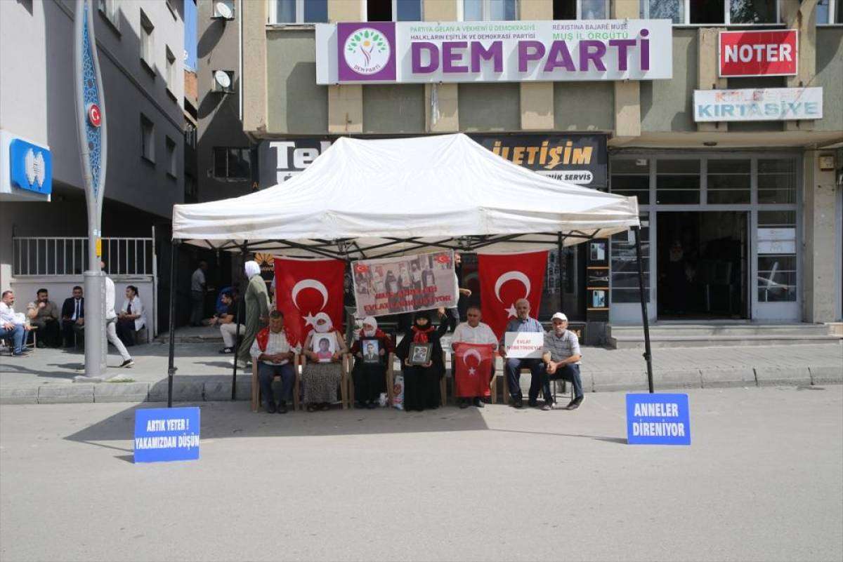 MUŞ (AA) - Muş'ta çocuklarının terör örgütü PKK tarafından dağa götürülmesinden DEM Parti'yi sorumlu tutan aileler, partinin il başkanlığı binası önündeki eylemlerine devam ediyor.