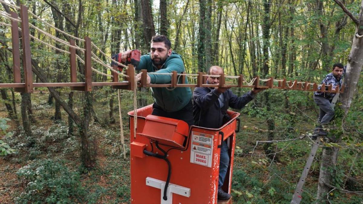Terme Belediyesi Park ve Bahçeler Müdürlüğü ekiplerince, doğal yapıyla uyumlu halat ve ahşap köprüler Kent Ormanı'ndaki ağaçlara monte edildi.