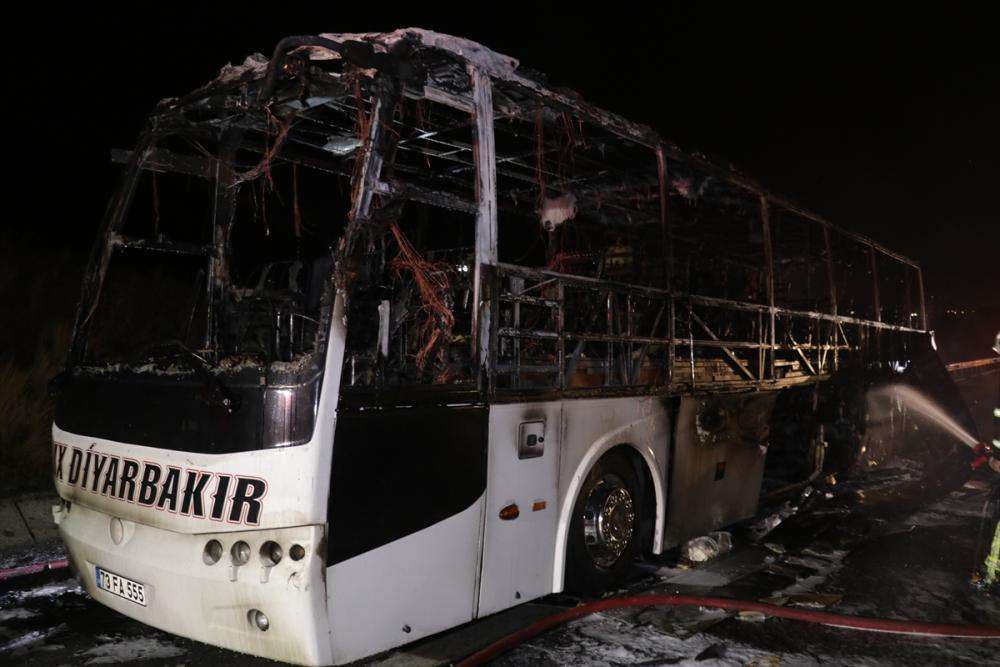 Yangında otobüs kullanılamaz hale geldi.