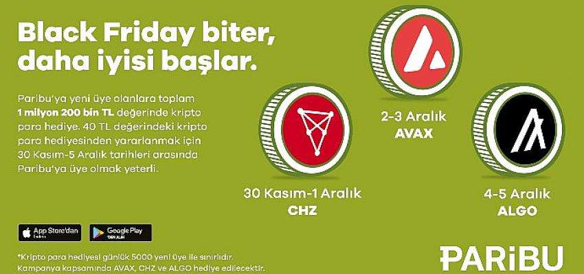 Paribu, kampanya kapsamında 30 Kasım-1 Aralık’ta üye olacak kullanıcılara 40 TL değerinde CHZ; 2-3 Aralık’ta üye olacak kullanıcılarına 40 TL değerinde AVAX; 4-5 Aralık’ta üye olacak kullanıcılarına 40 TL değerinde ALGO hediye edecek.