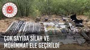 Bakanlıktan yapılan açıklamada, Pençe-Kilit Operasyonu ile teröristlerin inlerini başlarına yıkan Mehmetçiğin bölgede gerçekleştirdiği arama tarama faaliyetinde terör örgütüne ait çok sayıda silah ve mühimmatın ele geçirilerek kullanılamaz hale getirildiği belirtildi.