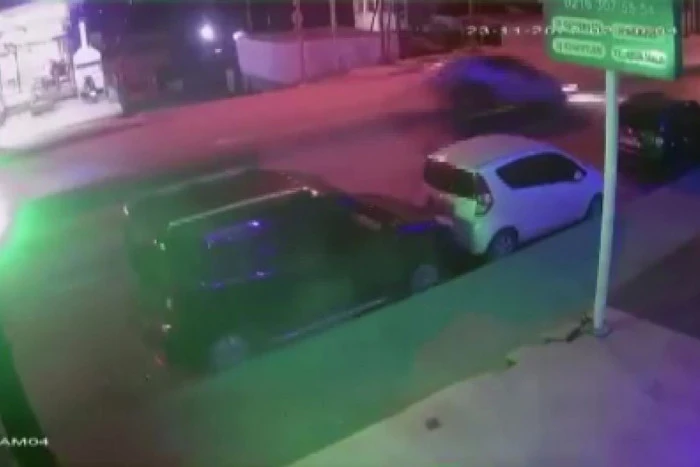 Kaza anı sokaktaki bir güvenlik kamerasınca görüntülendi.