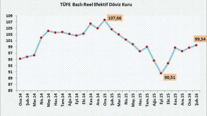 Bu dönemde Yİ-ÜFE bazında reel efektif döviz kuru endeksi de 2,62 puan azalarak 92,52'den 89,90'a geriledi.