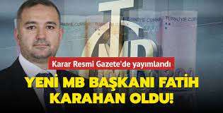 Resmi Gazete'de yayımlanan Cumhurbaşkanı Kararı'na göre, Merkez Bankası Başkanlığı görevine, Başkan Yardımcısı Fatih Karahan atandı