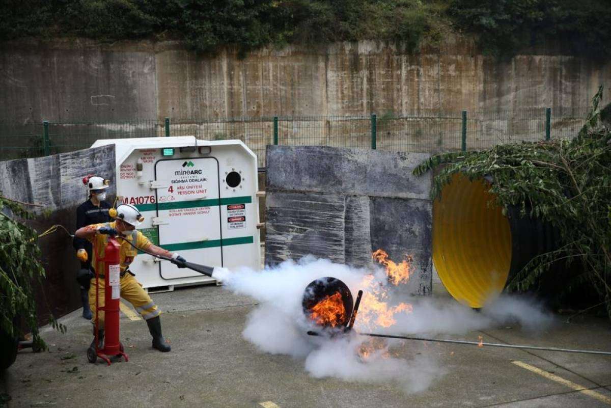 RİZE (AA) - Rize'nin Çayeli ilçesindeki maden sahasında 43 personelin katılımıyla yangın söndürme ve arama kurtarma tatbikatı yapıldı.