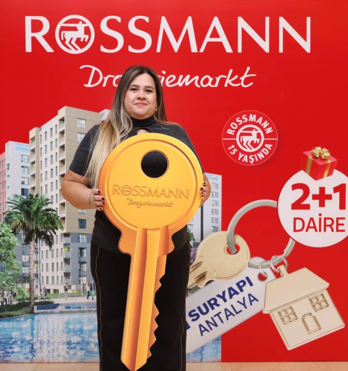 Büyük ödülün sahibi Nagihan Öztürk, İstanbul'daki Sur Yapı Metrogarden AVM'de yer alan Rossmann mağazasında düzenlenen törenle evinin anahtarını teslim aldı.