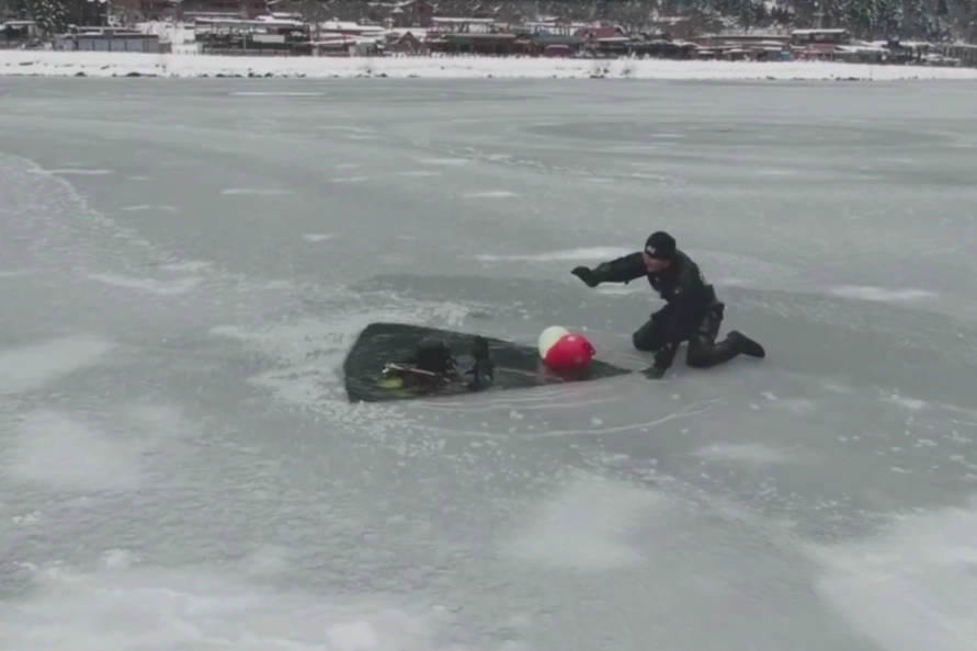 Trabzon Uzungöl'de Jandarma Komutanlığı'na bağlı SAK Timi, "İrtifa, Buz Altı ve Soğuk Su Dalışı" gerçekleştirdi.