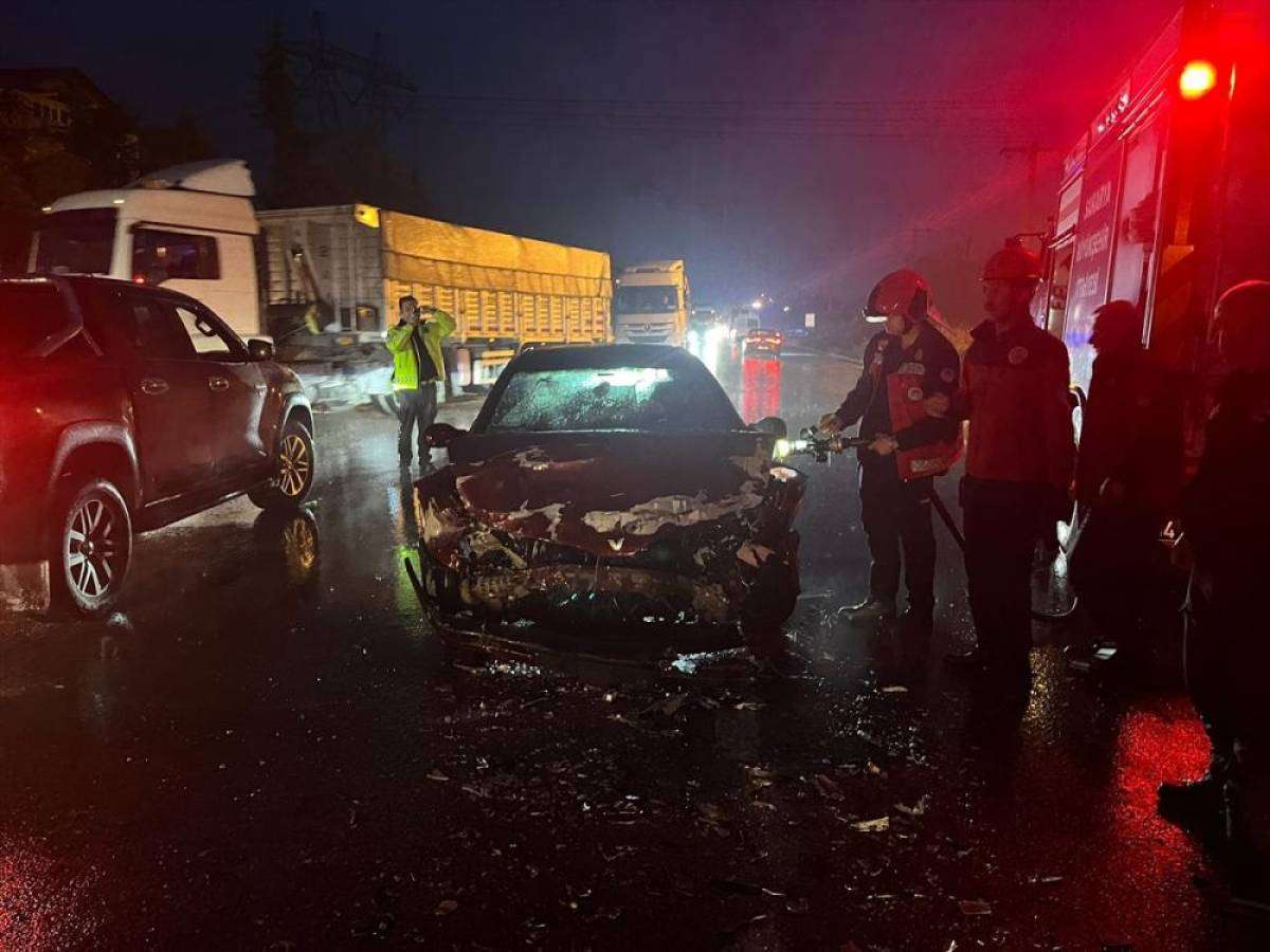 Sürücülerinin kimlikleri öğrenilemeyen 54 ACN 522 plakalı otomobil ile 54 S 0399 plakalı servis minibüsü, Anadolu Otoyolu'ndan D-100 kara yoluna bağlanan noktada çarpıştı.