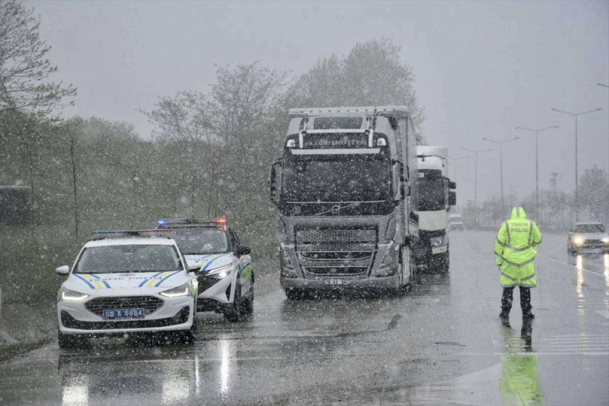 SAMSUN (AA) - Samsun-Ankara kara yolunda kar yağışı etkili oldu.