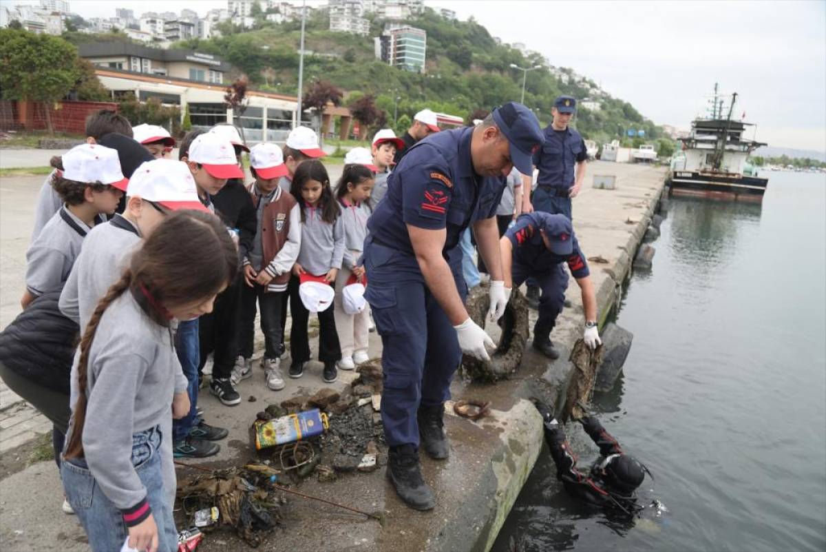 İl Tarım ve Orman ile Çevre, Şehircilik ve İklim Değişikliği il müdürlükleri ve Sahil Güvenlik Karadeniz Bölge Komutanlığı işbirliğiyle öğrencilere, deniz ve çevre kirliliği konusunda farkındalık oluşturmak için dalgıçlar tarafından dip temizliği çalışması yapıldı.
