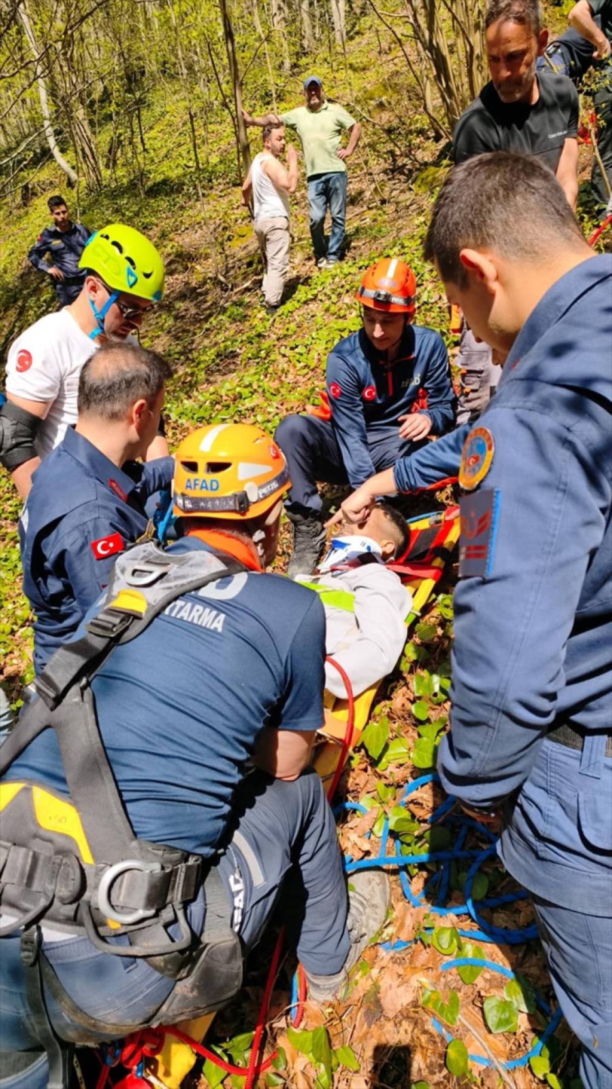 AFAD ekipleri, bilinci açık ve ayağında kırık olan yaralıyı bulunduğu yerden ipli istasyon sistemiyle çıkardı.