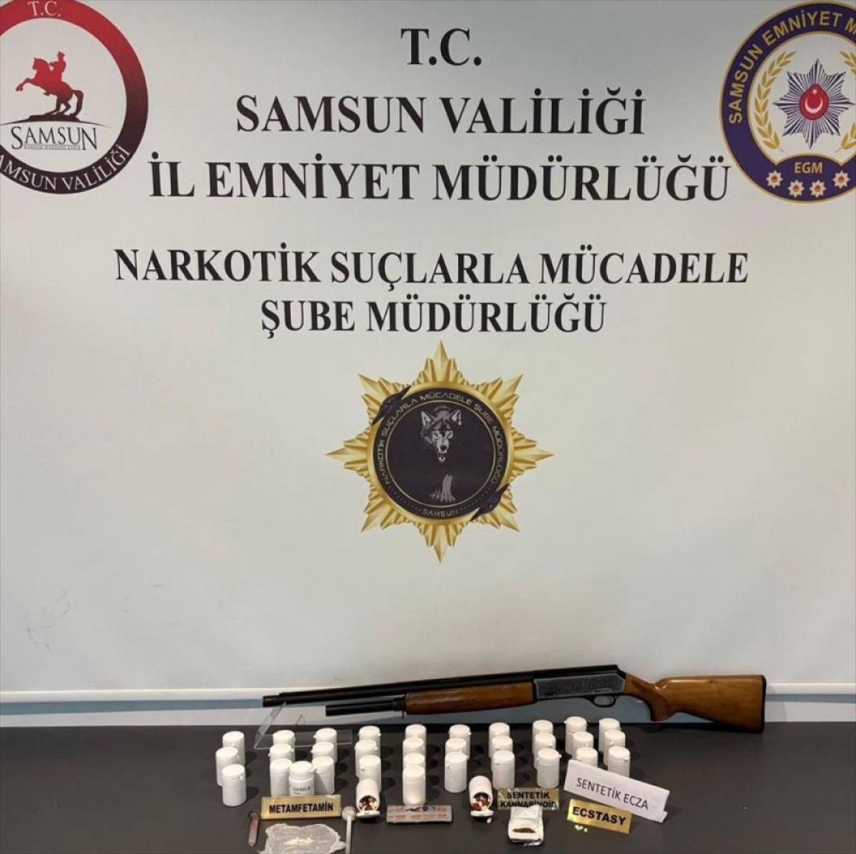 Ekiplerce düzenlenen operasyonda, belirlenen adreslerde, araç ve şüphelilerin üst aramalarında 8 bin 445 sentetik ecza, 67,83 gram uyuşturucu madde, 2 uyuşturucu hap, 1 hassas terazi, 4 uyuşturucu kullanım aparatı ve 1 ruhsatsız tüfek ele geçirildi.