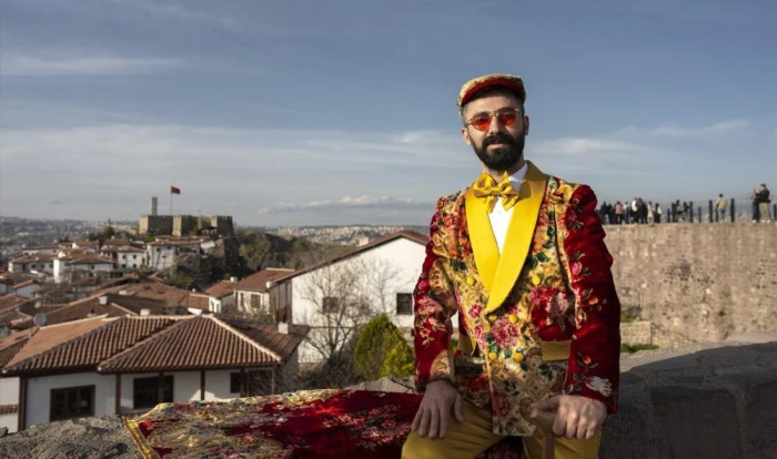 ANKARA (AA) - DİLARA İREM SANCAR - Ankara'da yaşayan 34 yaşındaki terzi Ziya Pınarbaşı, geleneksel işlemeli battaniye, kilim, halı ve perdelerden dönüştürerek tasarladığı kıyafetleri giyerek, Başkent sokaklarında sergiliyor.