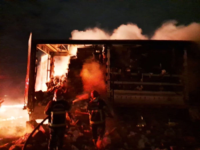 Şanlıurfa'da peçete yüklü tırda çıkan yangın söndürüldü