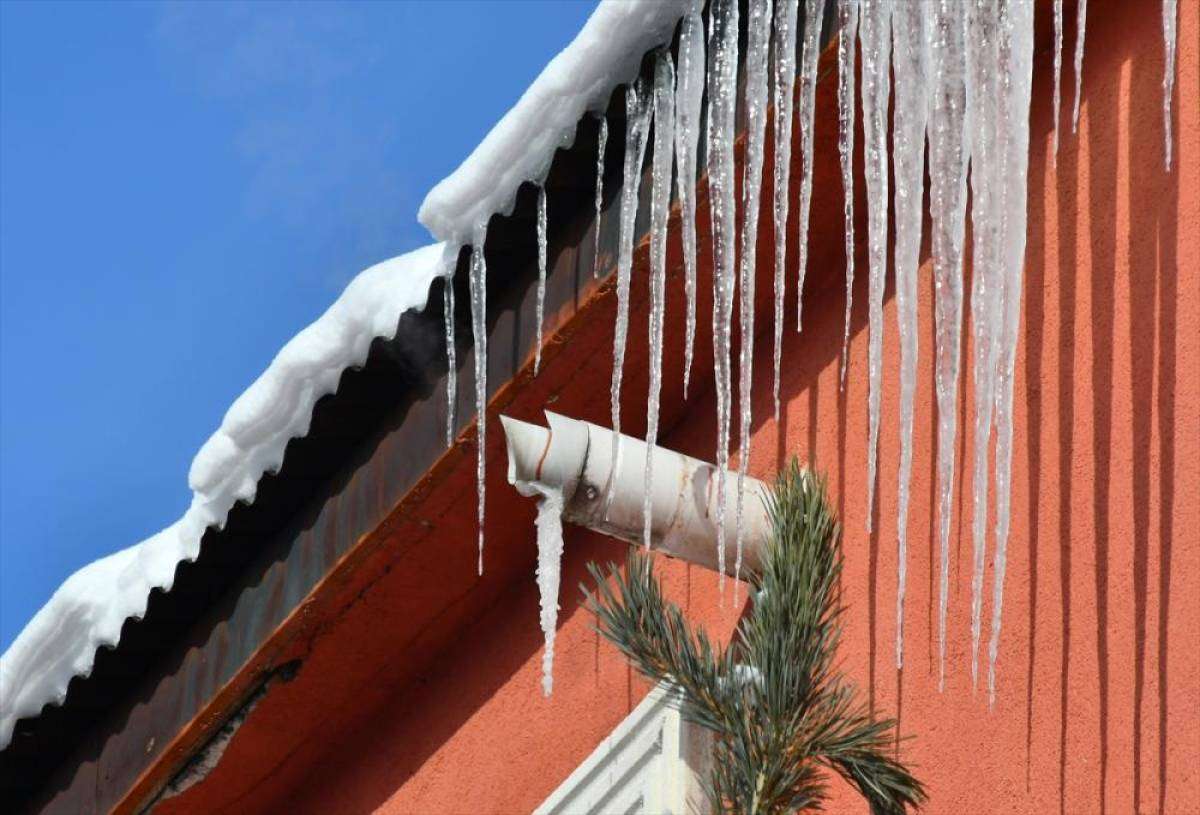 Yoğun kar yağışının ardından kar kalınlığının 60 santimetreye ulaştığı ilçe merkezinde, bina çatılarında uzun buz sarkıtları oluştu.
