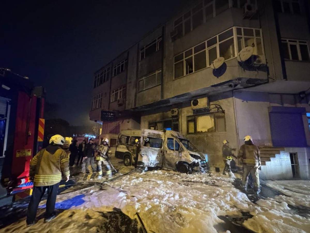 Kısa sürede büyüyen alevler minibüsün bitişiğinde bulunan iki katlı iş yerinin giriş katına da sıçradı. Yangın nedeniyle iş yerindeki personel binayı boşalttı.