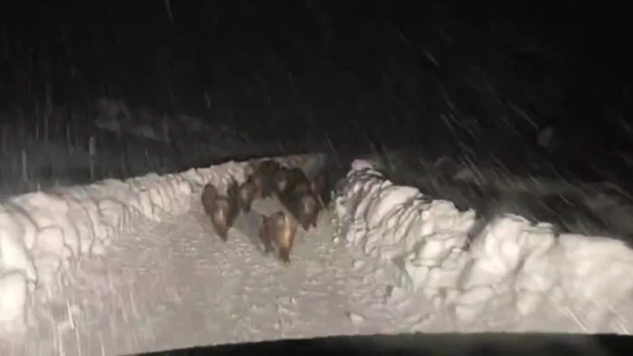 Kayıtlarda, sürücünün karlı yolda koşarak ilerleyen domuzlara "yol verin" diye seslenmesi de yer alıyor.