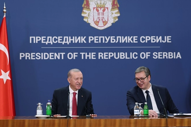 Cumhurbaşkanı Recep Tayyip Erdoğan ile Sırbistan Cumhurbaşkanı Aleksandar Vucic'in huzurunda, Sırbistan Cumhurbaşkanlığı Sarayı'nda iş birliği anlaşmalarının imza töreni gerçekleştirildi.