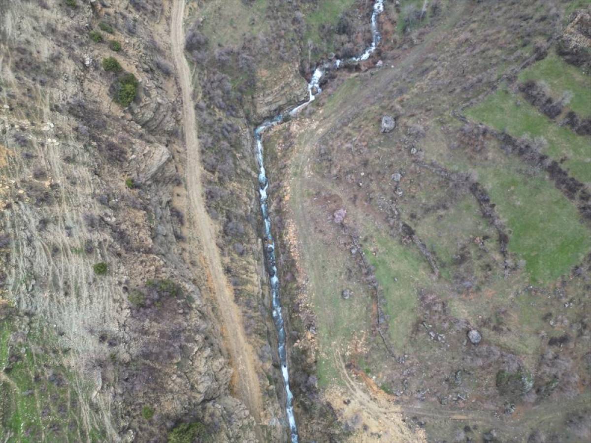 ŞIRNAK (AA) - Şırnak'ın Uludere ilçesine bağlı Hilal beldesinin eski yerleşim yeri sınırlarındaki kanyon dronla görüntülendi.